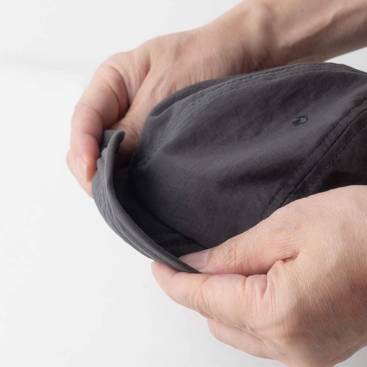最大の特徴は、小さな力でツバが曲がり、何かにぶつかったり突風に吹かれた際にも飛ばされにくい「Free Brim(フリー・ブリム)」です。